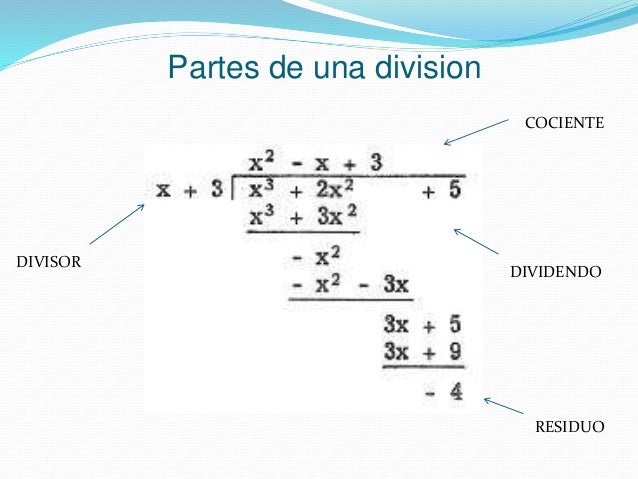 Se llama algoritmo al procedimiento que se sigue ( los pasos) para hacer una operación. Como puede apreciarse es sencillo realizar esta operación, he implementado las variables porque la mayor parte de las ocasiones lo que queremos es obtener el resultado y el residuo de una división que no conocemos, por ejemplo cuando el usuario ¿como se utiliza el operador modulo en c++? La división es una de las operaciones básicas de la aritmética elemental. En la matemática, la división es una operación parcialmente definida en el conjunto de los números naturales y los números enteros;