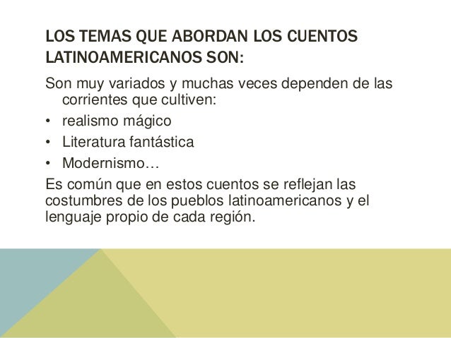 Bloque 1 El cuento latinoamericano from image.slidesharecdn.com Compartimos una lista con 51 grandes cuentos de la literatura latinoamericana ordenados alfabéticamente, que pueden leer online. Un cuento es una narración breve que bien puede ser expresada de forma oral o escrita. Julio ramón ribeyro es un gran escritor peruano que se incluye dentro de la generación del 50.
