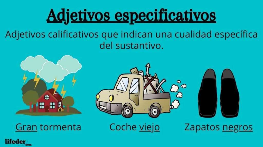 Los adjetivos especificativos son aquellos que señalan una cualidad que diferencia al sustantivo al que se refiere de otros.