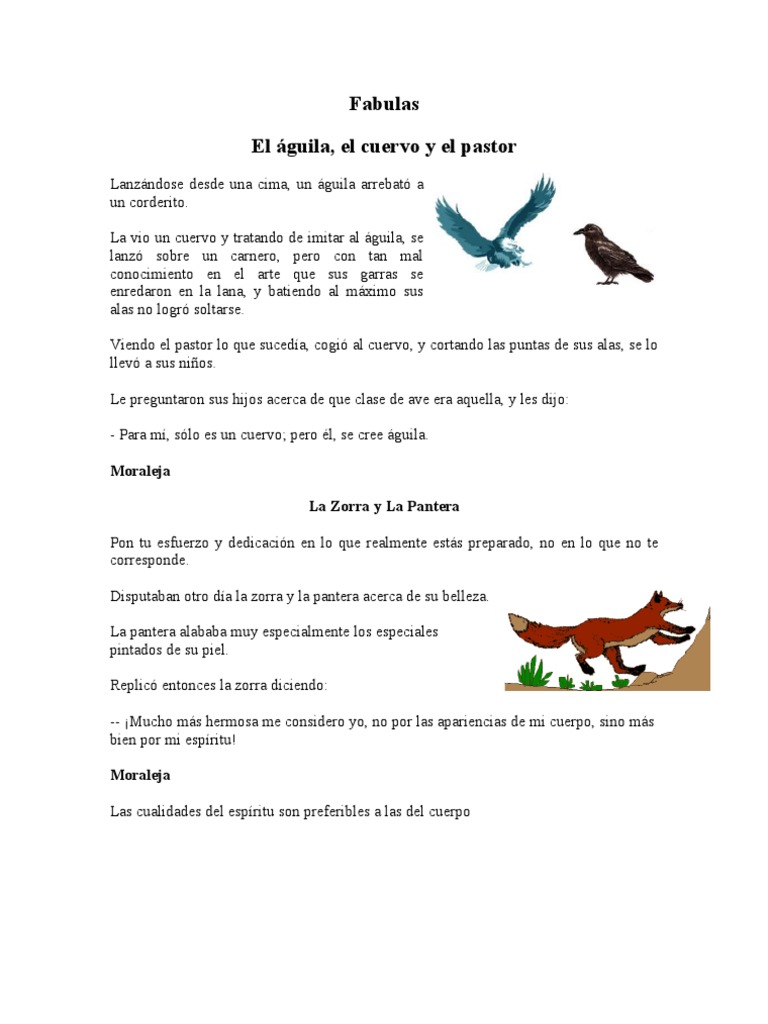 Siguiendo el ejemplo de fedro otro fabulista, samaniego elimina de sus fábulas el tono ingenuo y entrañable de que dotara esopo a las suyas y fábulas de esopo y sus moralejas el gato y el ratón. Muchos cuentos, fabulas con moraleja, leyendas, mitos, citas, refranes. 3 en una lluvia brava, una zorra, bien peluda, se encontraba en el bosque, y corrió para buscar refugio, llegó a la casa de un pajarito, le tocó la puerta. Las fábulas se destacan por ser muy populares gracias a su sencillez y fácil comprensión para todos.